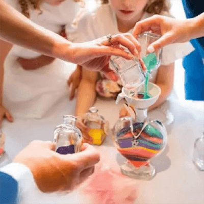 A sand ceremony during a naming service is symbolic. Using a glass container and different coloured sand, key individuals in the child’s life, parents, siblings, grandparents, family and friends are invited to pour their vial of sand into the glass, which represents family unity and your child’s place in the family.